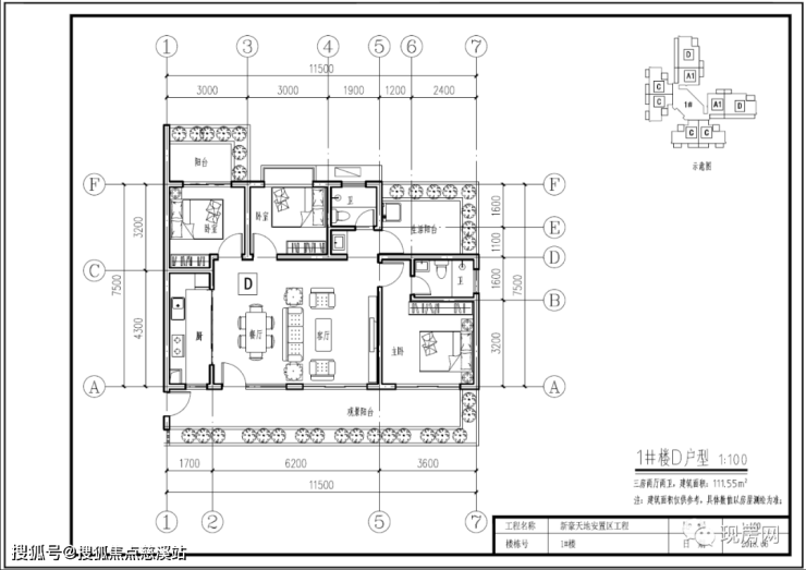1#号楼D户型111.55㎡(三房两厅两卫)