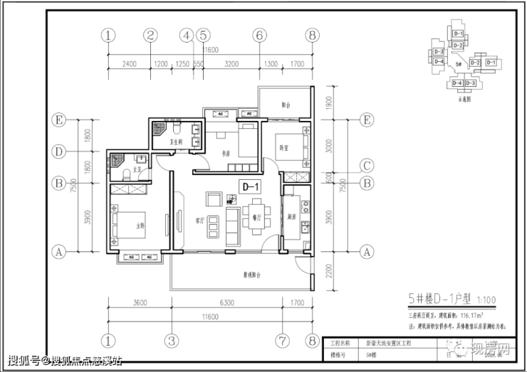 5#号楼D1户型116.17㎡(三房两厅两卫)