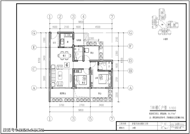 1#号楼C户型86.91㎡(两房两厅两卫)