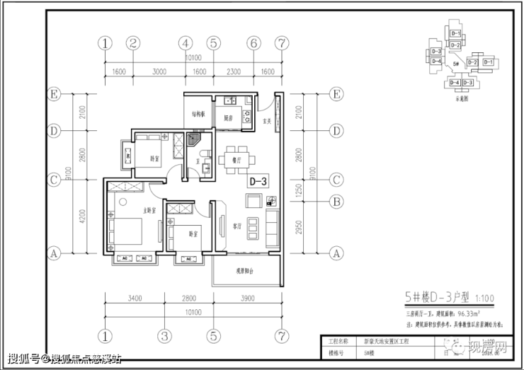 5#号楼D3户型96.33㎡(三房两厅一卫)