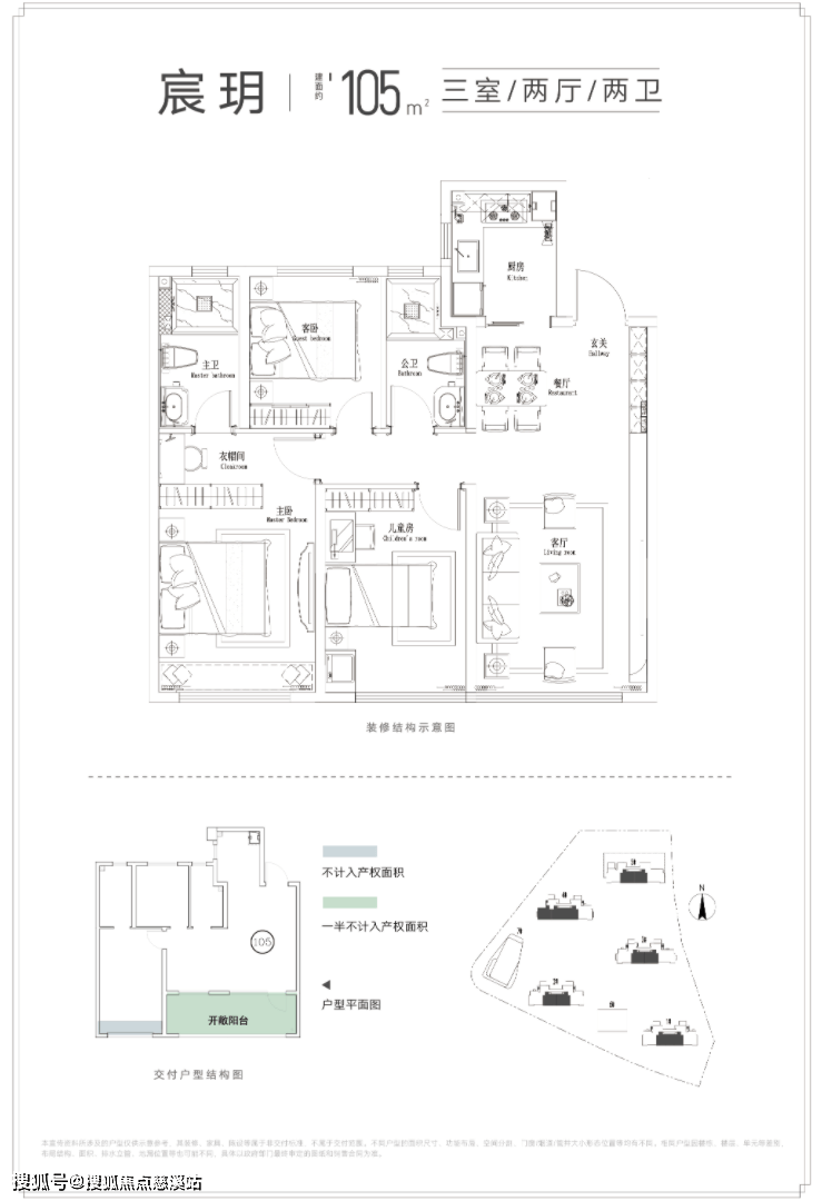 宸玥建面约105㎡二室宽厅/三室两厅两卫