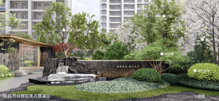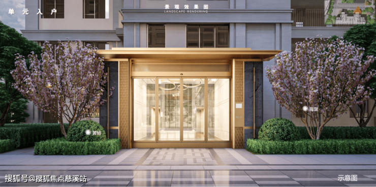 ※双接待大堂、入户花园、海棠迎宾树,单元门金属和石材的碰撞,人脸识别可视对讲,打造花园式归家仪式感。