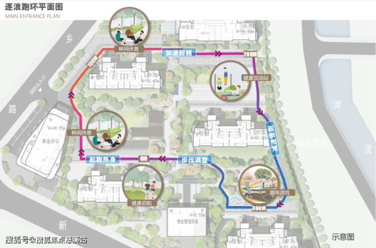 ※「一轴、一心、一环」构筑诗意生活场——中央景观轴、中央会客厅、环氧跑道三大核心场景有机串联,阳光草坪、儿童游乐场、活力跑环、林下会客厅等会客休闲空间,将自然意趣、社交温度与健康生活融合。