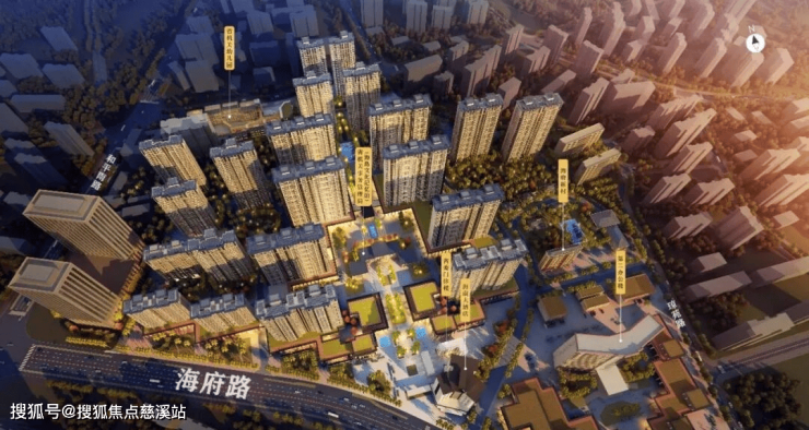 海府大院以新中式风格,珍罕的板式建筑,正南正北布局,面面向阳,光线涵养生活每一寸空间,户户可观景,层层可凭栏,至阔楼间距更将胜景一览无余。