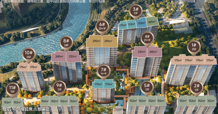 项目总共规划11栋住宅,其中5栋21-25F高层,6栋15-17F小高层,共614户,绿建奖励+阳台+设备平台+架空层等地上不计容面积9602㎡,相当于每户增加15.6㎡的面积,每户平均得房率提升约9%