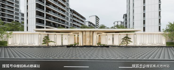 建筑立面:采用现代主义风格,以白玫瑰/灰色仿石涂料、灰色铝板为材质,融入经典海棠符号,形成“光幕立面”效果,阳光下呈现流动光影美学