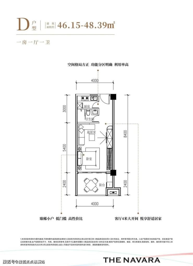 1、46平米开间
