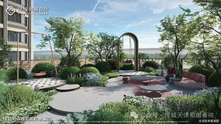 立体园林:沉浸式宅间意趣,下沉庭院里叠水映着树影,与空中花园上下呼应,勾勒出一幅藏于城芯的生态秘境画卷;