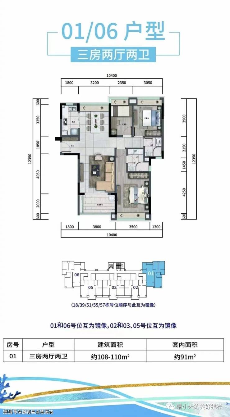①T5F户型 108-110㎡ 三房两厅两卫
