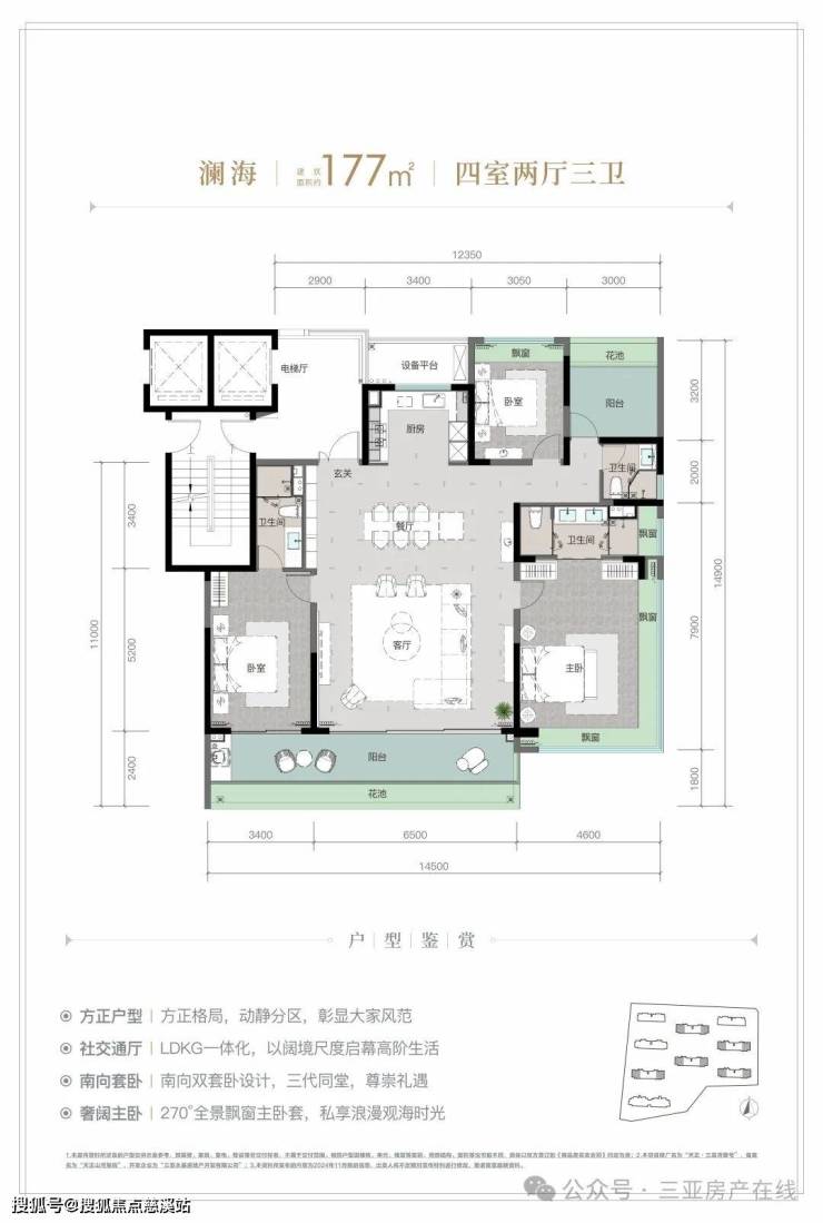 规划建筑面积约126-213㎡观海奢装大平层,约3.1米阔绰层高,部分户型创新设计270°全景飘窗主卧套、四开间朝南等,全成品高标奢装,营造全新舒居体验。