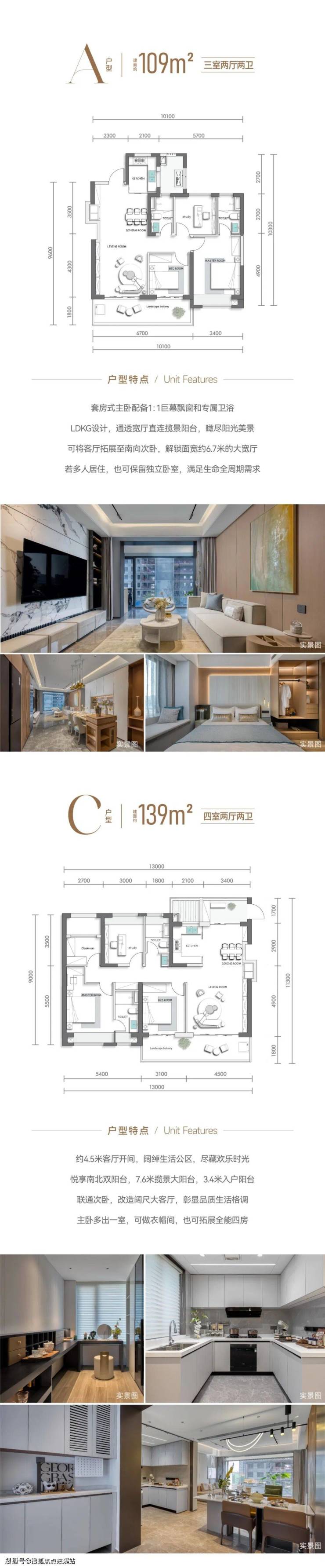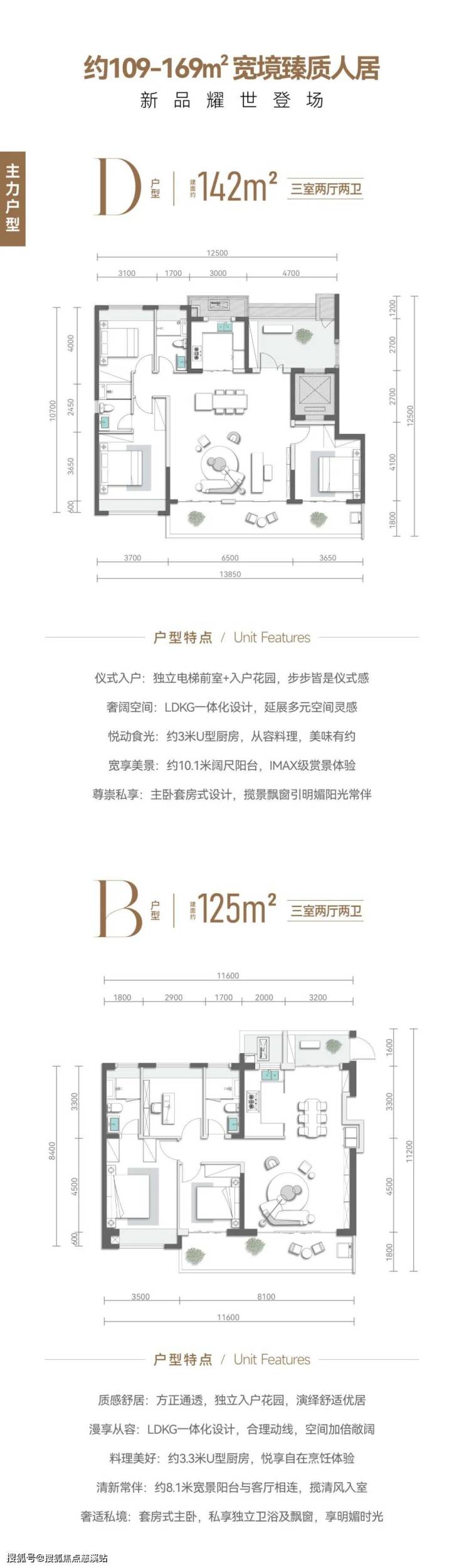 产品设计:推出109㎡-169㎡多种户型,强调全生命周期适配性,如142㎡户型可灵活调整空间布局,满足不同家庭阶段需求;109㎡户型南北通透,6.7米跑道阳台兼顾景观与实用。