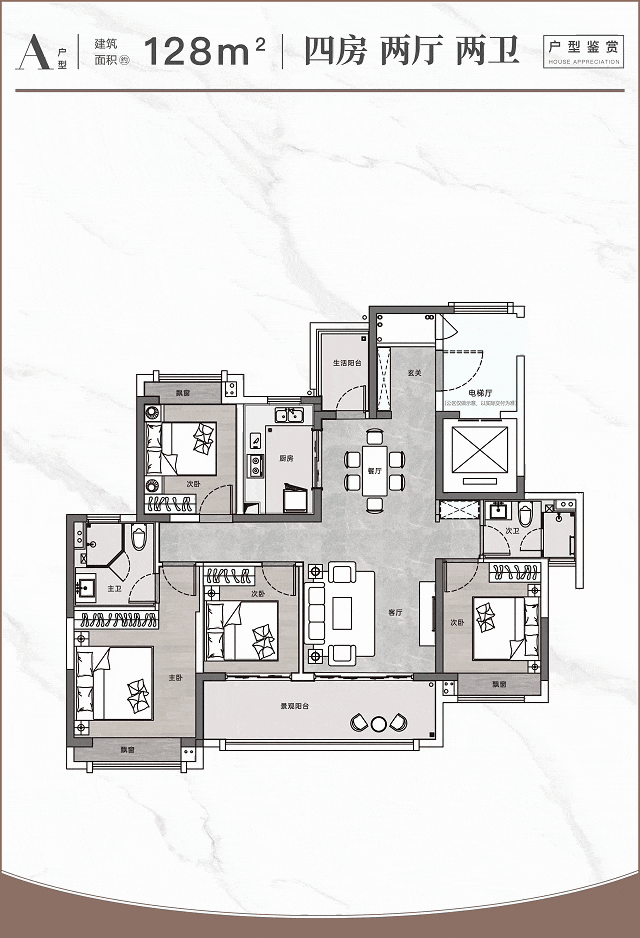 建面约 12 8 ㎡四房 则 实现了改善级的居住享受!