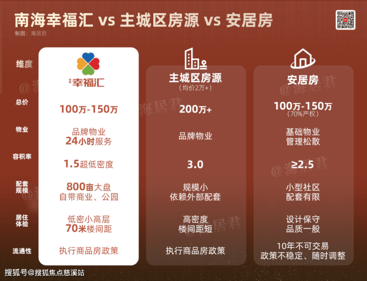 同样的预算,与其在 主城区 里忍受逼仄空间,或在安居房中牺牲产权与品质, 不如在 南海幸福汇 这样 的醇熟大盘 中享受悦己生活。