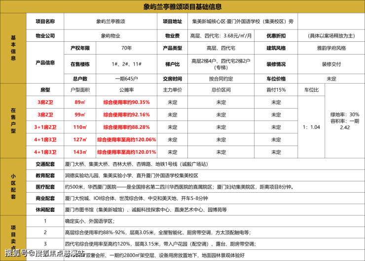 厦门首座「雅颂系」臻藏著作、翔安首个四代宅标杆(信息来源:搜狐网)