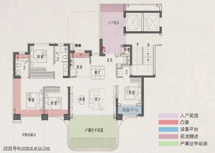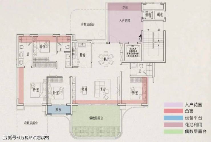 2、超四代住宅,南北双花园,奇数层4个、偶数层3个外挂!(2个露台、入户花园、阳台);