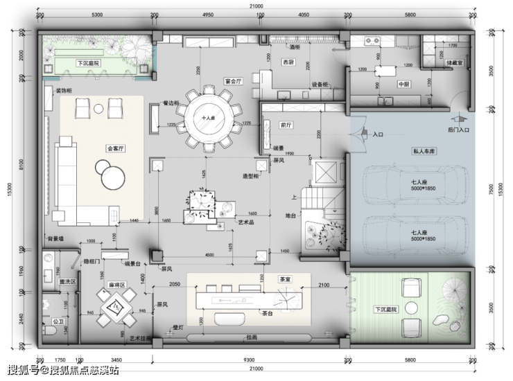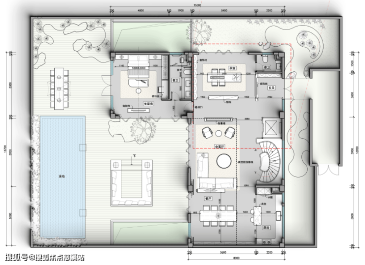 建筑面积:约173㎡,5房4厅7卫+2保姆房+2车位+1庭院泳池,使用面积920m²-1410m²
