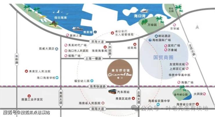 丘海大道、滨海大道、海秀快速路交汇,海口交通枢纽核心,约2公里可达国贸片区,约0.5公里可达秀英港、约0.5公里可达海口汽车西站,快速抵达海口火车站、机场及G98高速路口等。