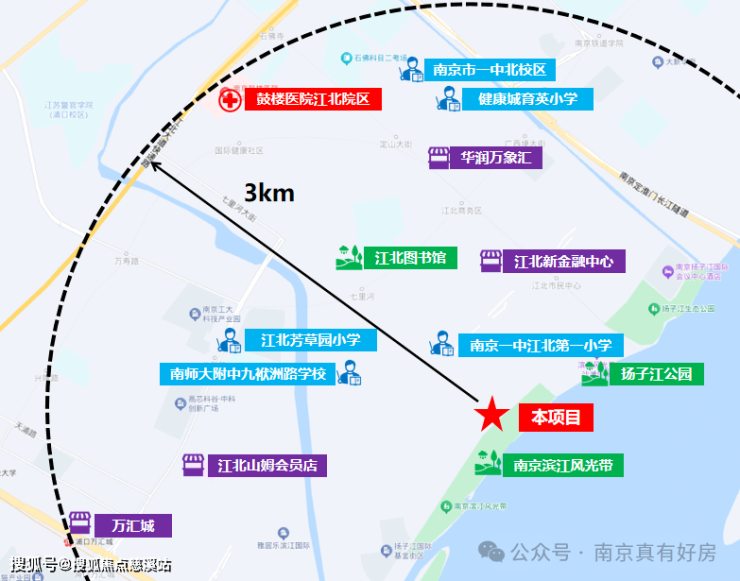 1、项目临江,拥有一线江景资源,与长江直线距离仅约300米,是今年江北待上市楼盘中离江岸最近的项目;