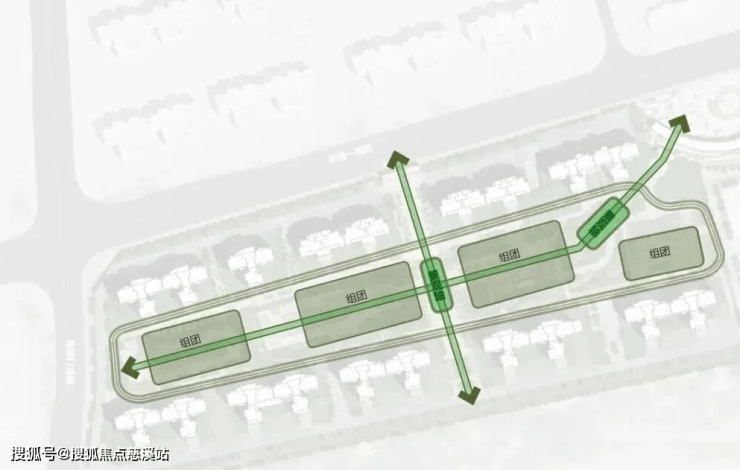 园区通过住宅楼栋围合形成东西向通廊庭院,打造“一环二轴多组团”的景观空间;“一环”是健康步道,连接各个景观区和休闲广场,每一次呼吸都是自然的馈赠;
