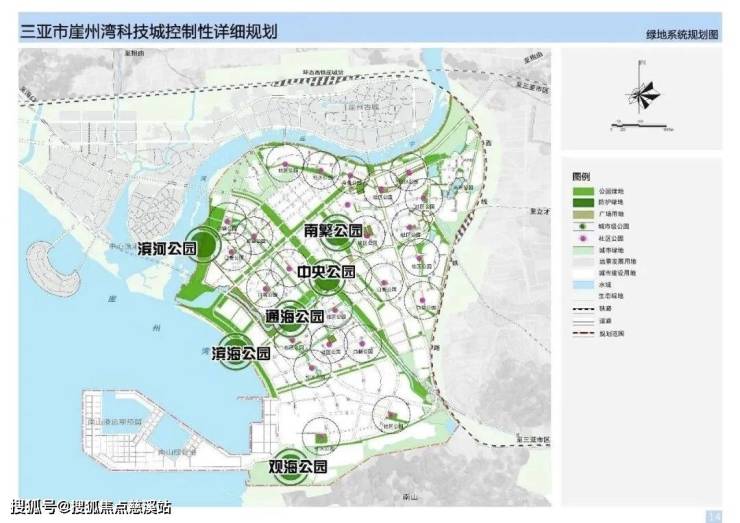公园配套:通海公园、滨海公园、南繁公园、滨河公园、观海公园;