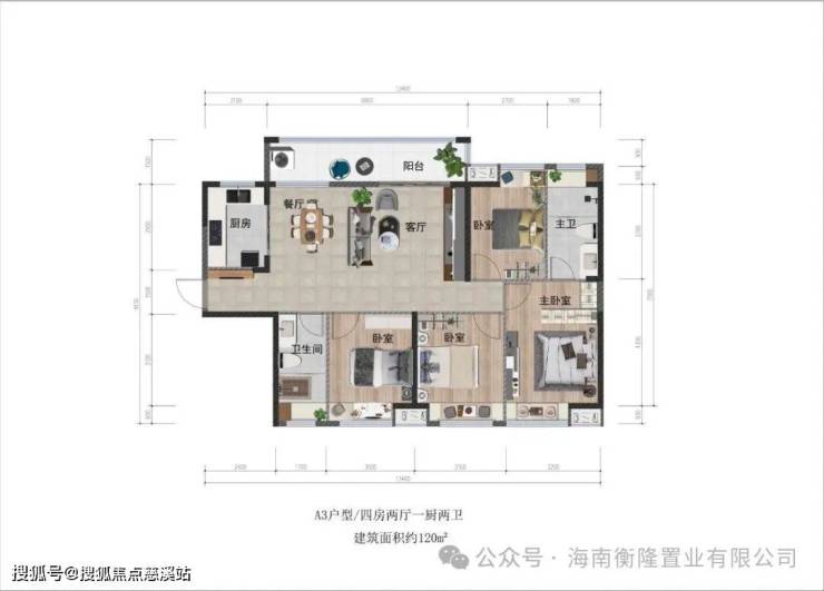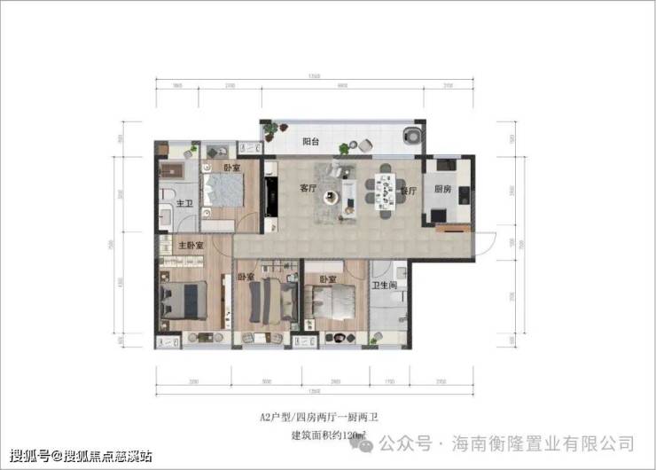 主力户型:(建面约) 120m²四房两厅两卫。