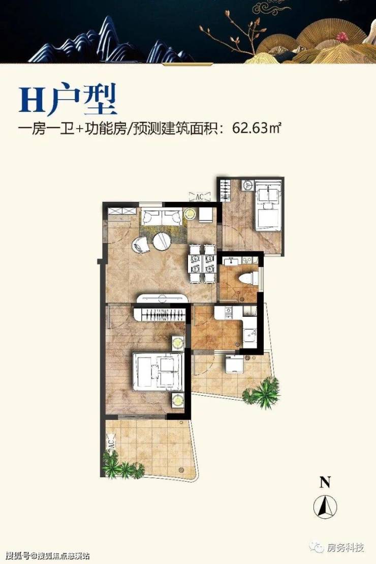 H户型 一房一厅一卫 建筑面积为62.63㎡