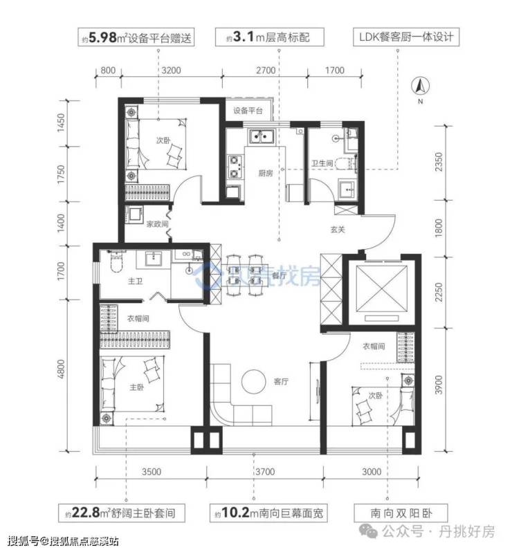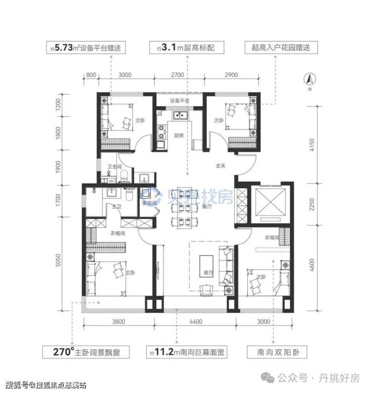 新规产品赠送约10平,南向卧室客厅落地窗,全明通透。
