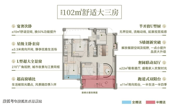 户型:主推102-127㎡三房至四房户型,涵盖舒适大三房、四房端户及类一梯一户设计,满足刚需及首改需求。