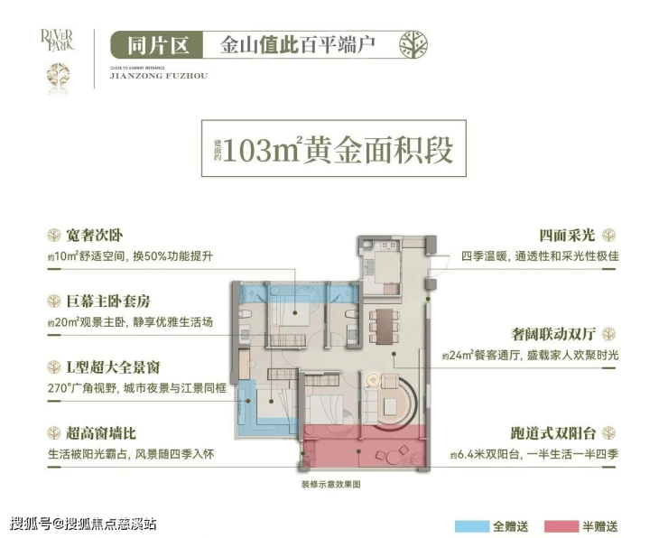 生态:出门即达闽江公园,社区内设滨河漫道、约3000㎡前场花园街区,营造公园式居住氛围。