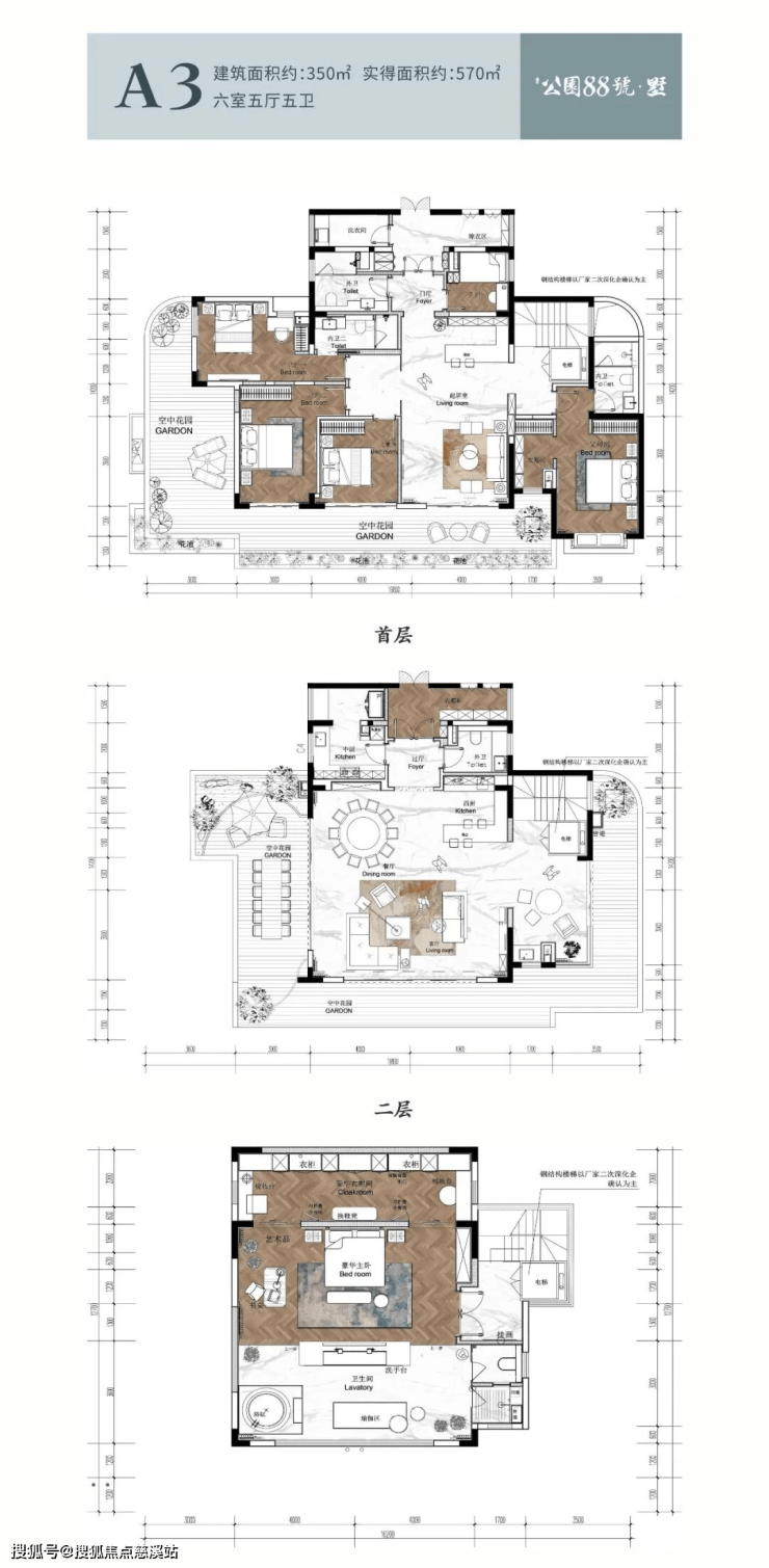 奢华主卧套房配独立衣帽间卫浴 私密性高