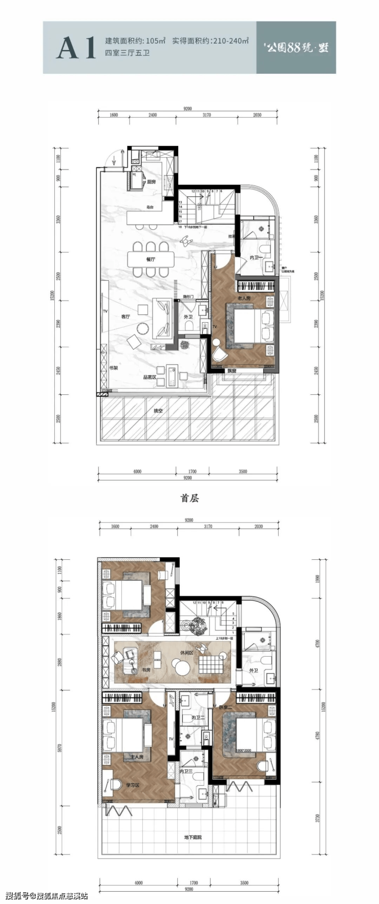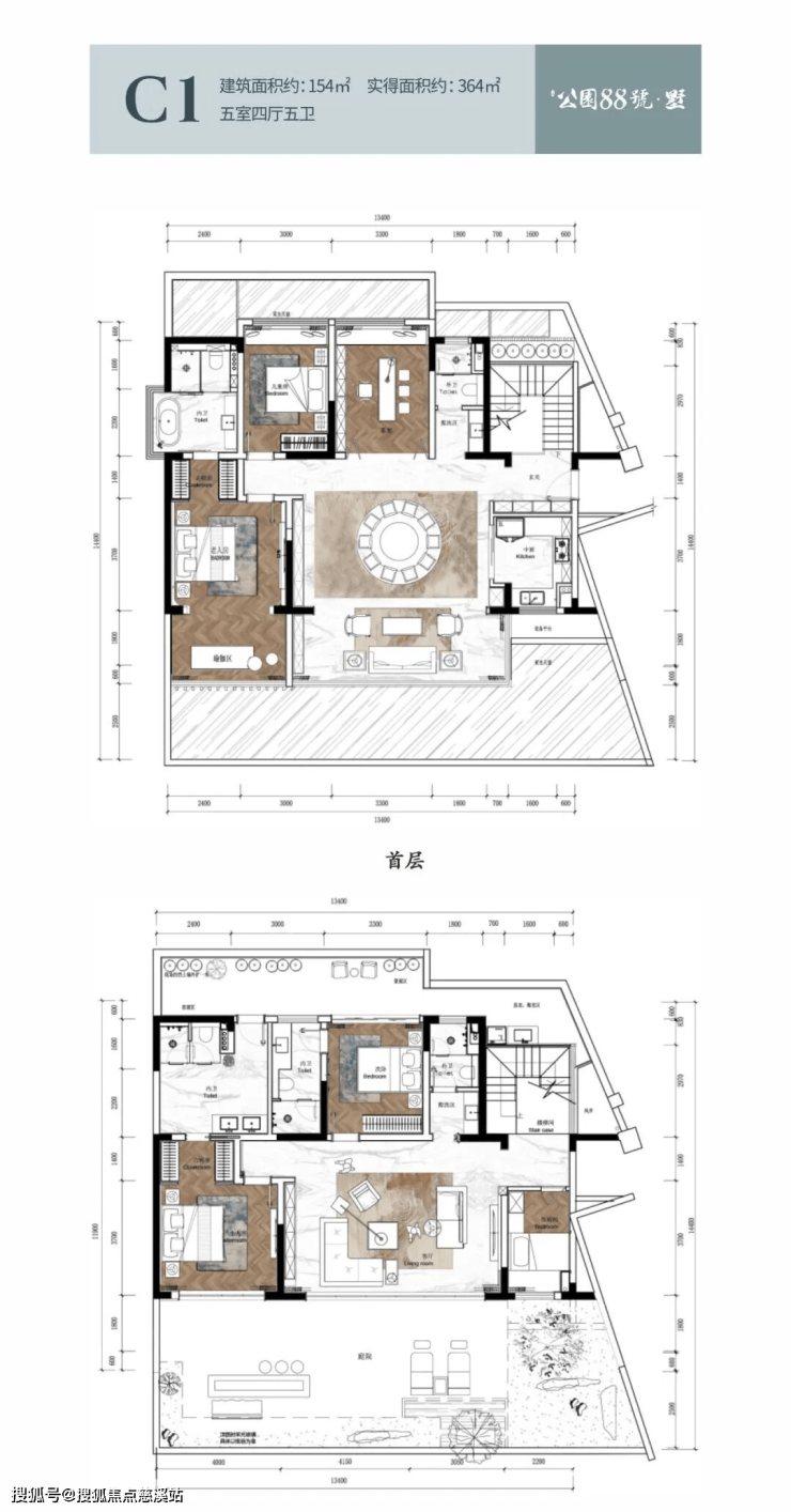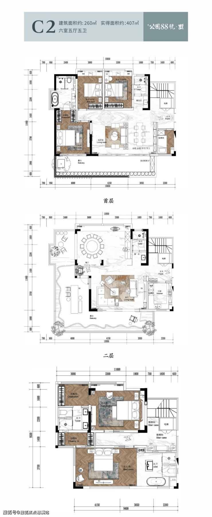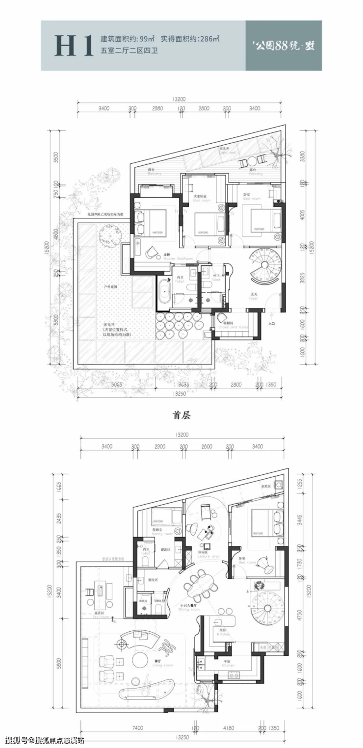 双庭院 双主卧套房设计