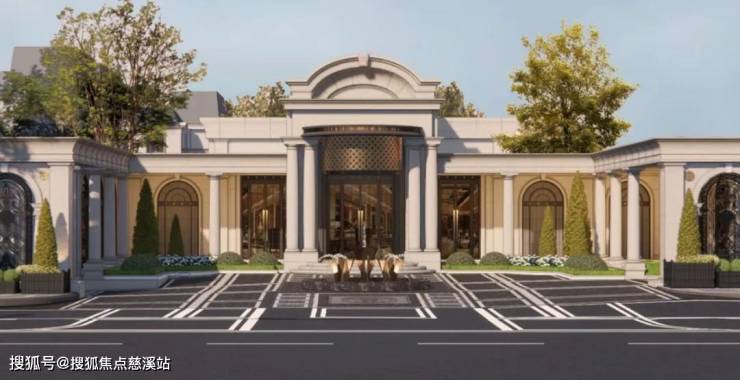 项目选择纯正法式风格+干挂石材外立面。社区大门打造近50米法式门庭,园林以“横三竖五”的经典构图,灵感来源于卢浮宫。