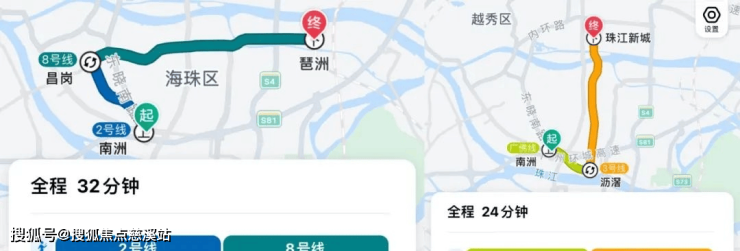 从家楼下坐地铁去琶洲可由2号线转8号线,或者转11号线,时间都差不多,都是在30分钟左右;去珠江新城的话,乘坐广佛线到沥滘换乘3号线,全程5个站,耗时24分钟左右。