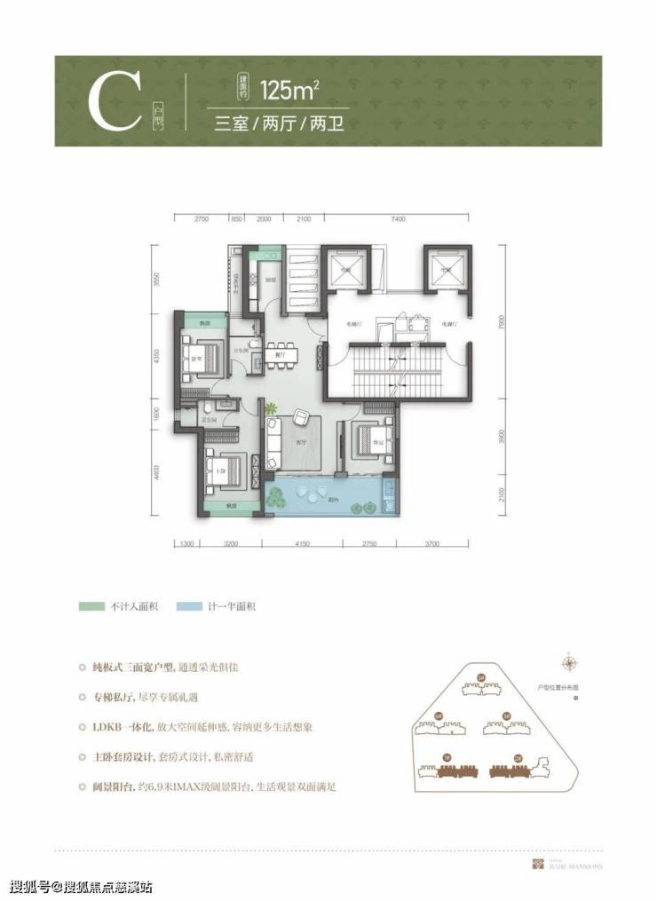 部分户型专梯私厅,南北通透,双面宽景阳台