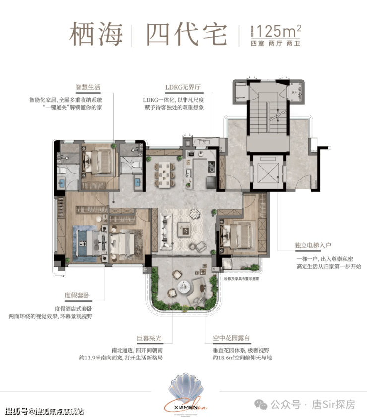 面宽约13.9米,大露台面积约18㎡。