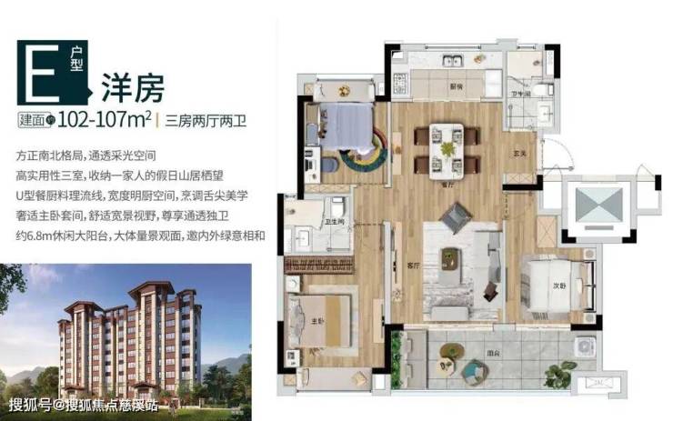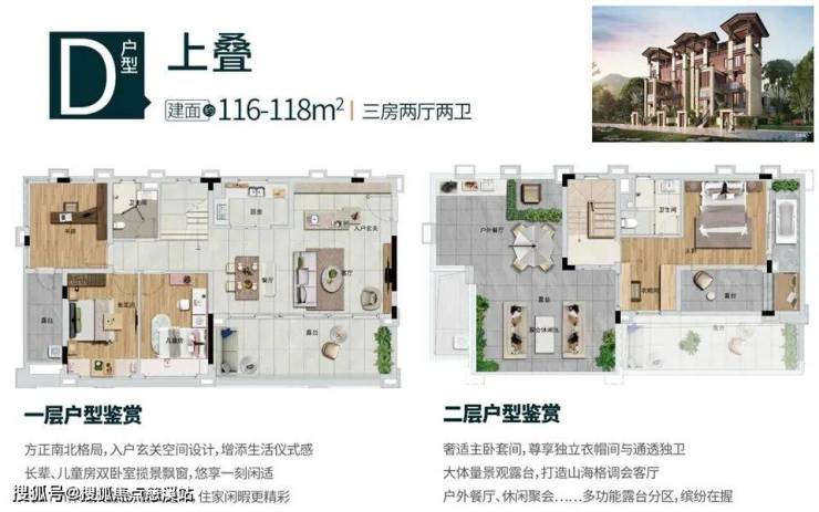 项目整体产品打造为“全龄度假社区”,在售建面约102-107㎡三房两厅两卫板式洋房;建面约116-118㎡三房两厅两卫叠墅上叠;建面约109-113㎡四房两厅三卫叠墅下叠。