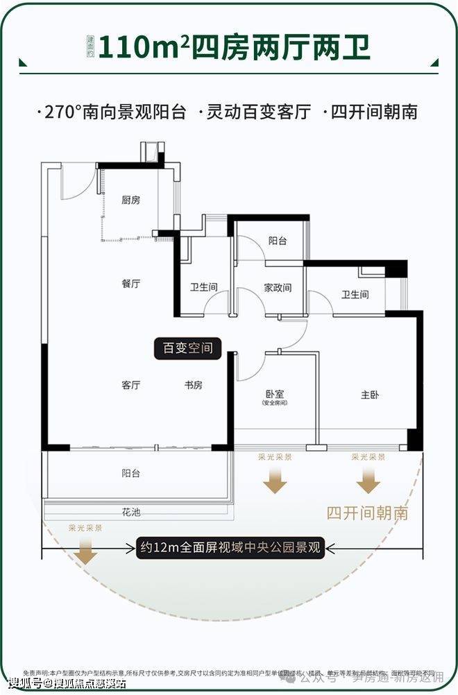 产品设计出色:采用市区少见的板式设计,公建式外立面,颜值和舒适度较高。主推的110-175㎡四房户型,户户朝南。如110㎡户型竖厅设计,四开间朝南,有ldk餐客厨一体设计;136㎡户型南北对流,ldk厨房、餐厅、客厅一体,采光好,厨房为半开放式并配置中西厨岛台,主卧空间大且南北对流。