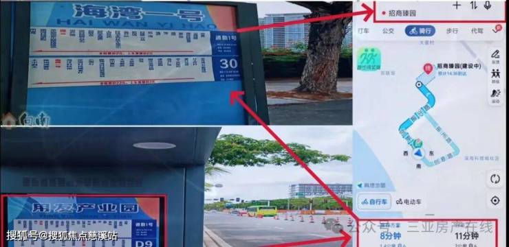 在交通出行方面,距上海世外学校公交站约550米,崖州湾通勤1号和2号线仅仅于此,距社区卫生服务中心公交站约800米,南繁科技城专线经停于此,距海湾1号公交站和用友产业园公交站约1.4km,此两处公交站点分别有终点至亚龙湾公交枢纽站的30路公交路线以及终点到三亚火车站的第9号公交路线。