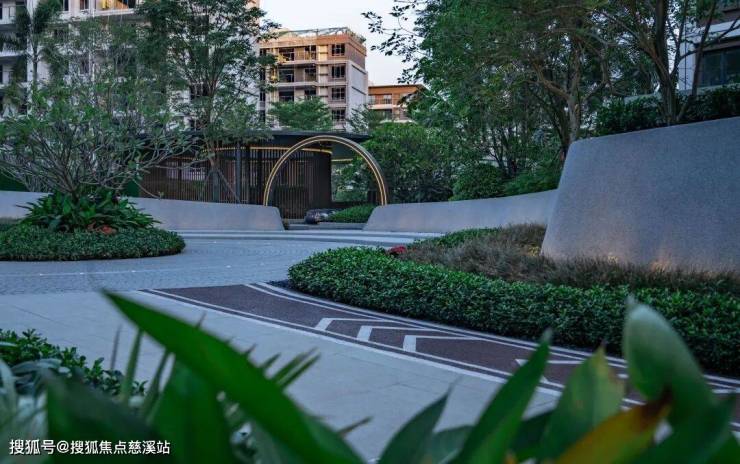 将设计拓展至路沿绿化以维持空间的整体绿林感,利用入口景墙逐级下降的高差关系形成层次丰富的景观体验,吸引人们自然地进入园区中,享受放慢脚步的奇妙感受。