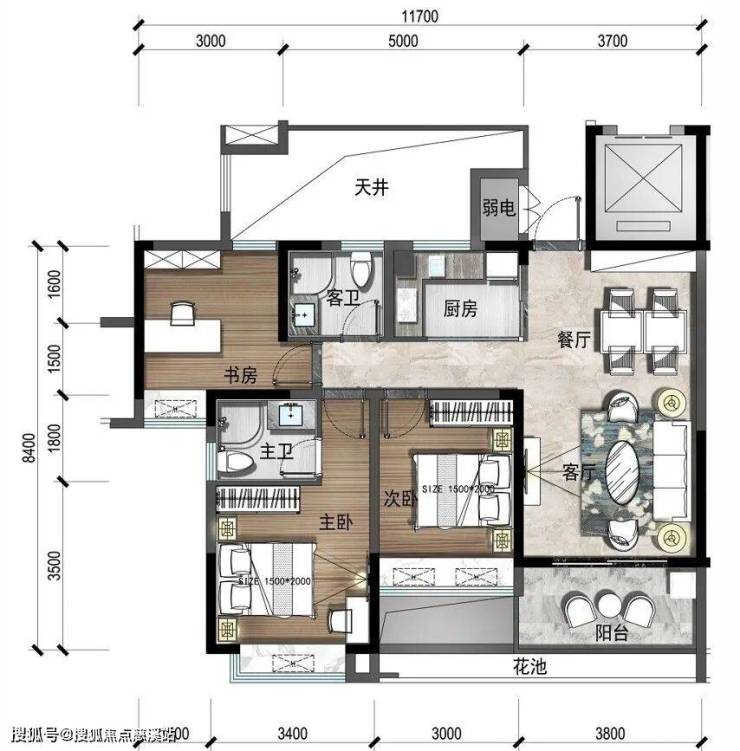A2户型:105㎡ 阳光三房