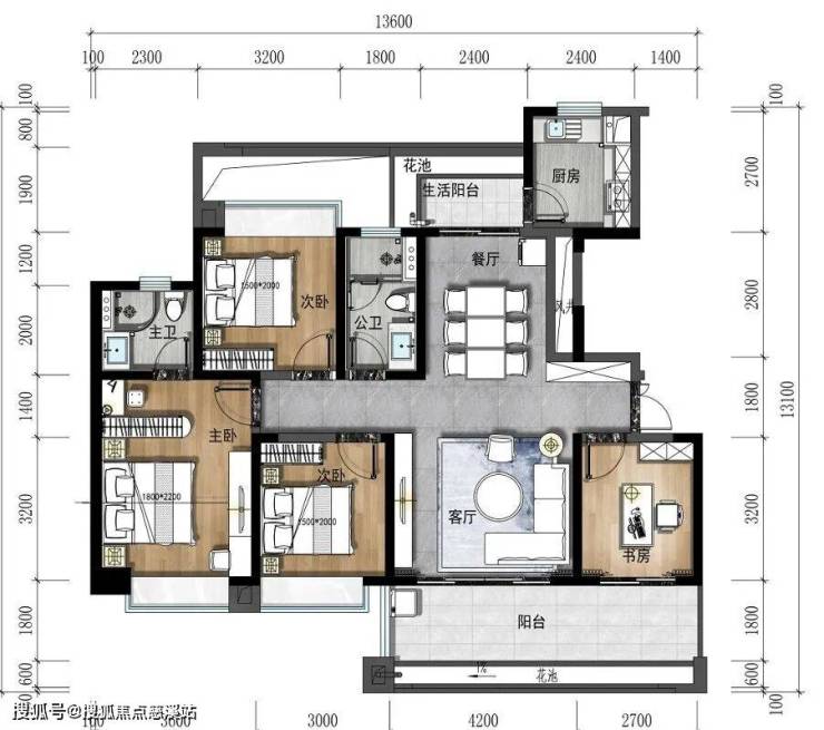 C户型:143㎡ 奢阔四房