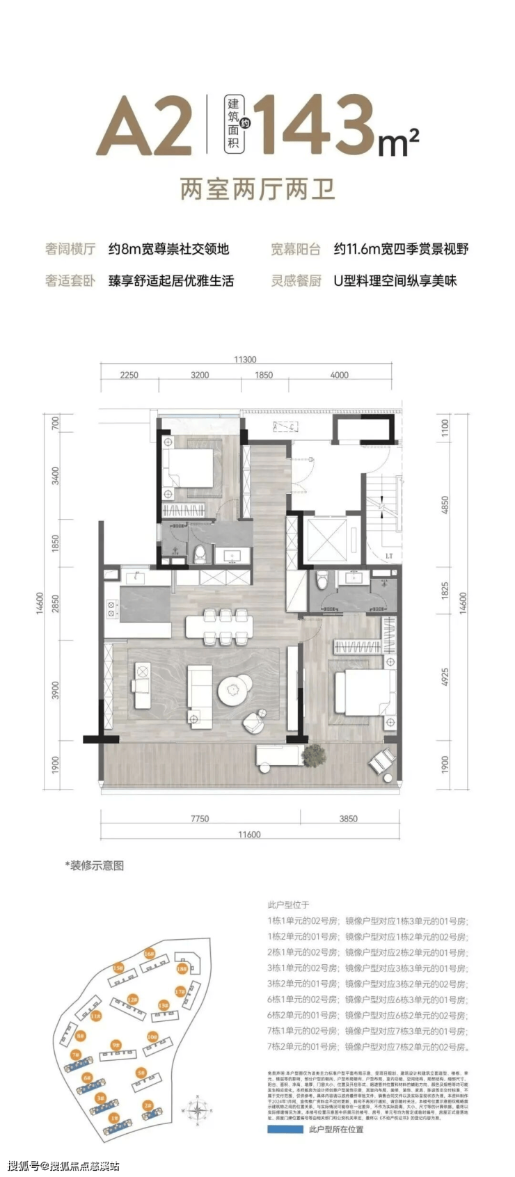 A2 户型(143㎡ 两室两厅两卫)
