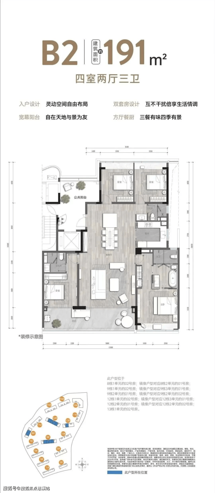 191㎡ B2 户型:四室两厅三卫,优化居住体验