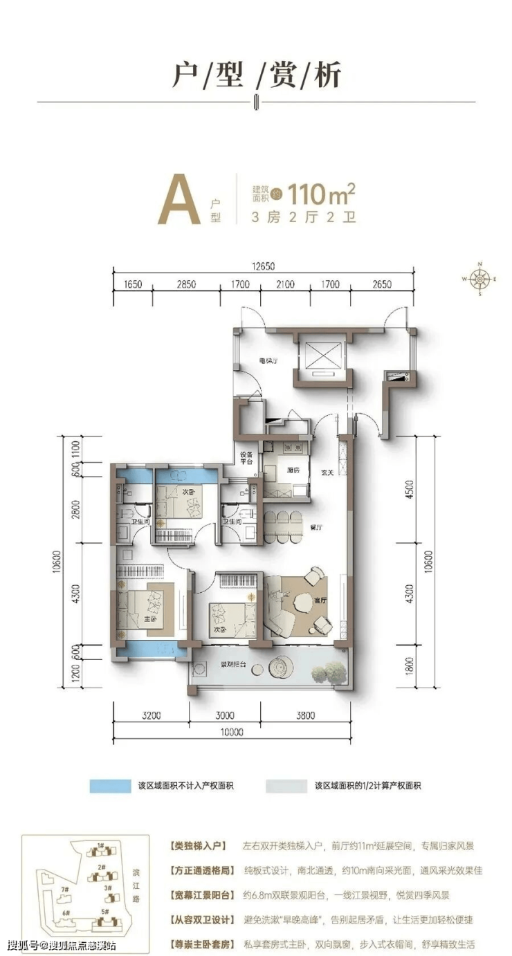 梯户比:两梯三户,两梯四户