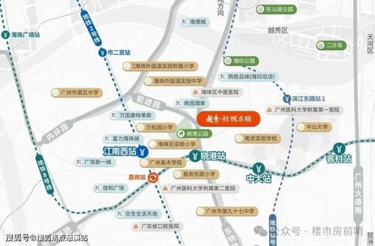 步行即达舌尖广州线、商圈打卡线、出圈人文线、健康保卫线内的多样配套江南西商圈、凯德乐峰广场、太古仓等商圈环绕,晓港公园、海珠外国语实验中学附属小学(距项目 200 米)、三甲医院等生活资源步行即达,无需等待规划落地。