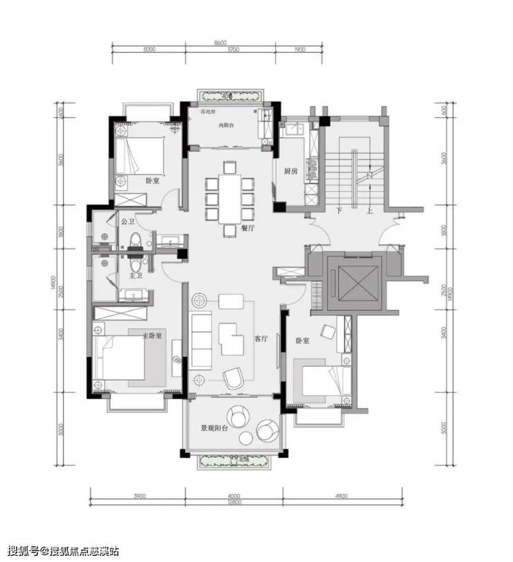 2、B户型:建筑面积约120平方米三房两厅两卫