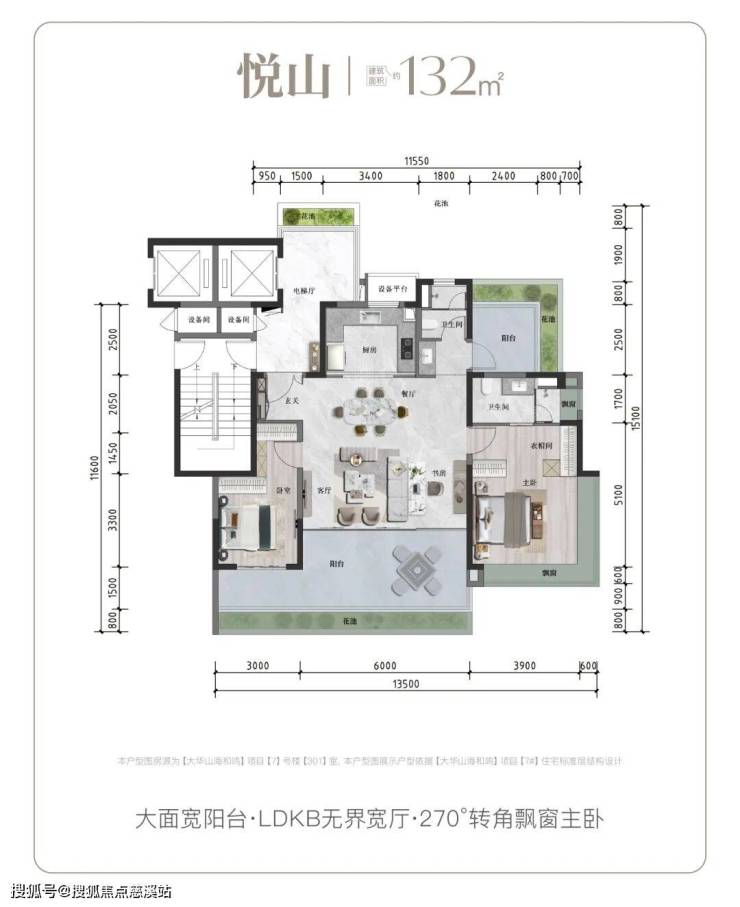 2. 产品户型:户型建面112-186㎡三/四房,带超高赠送(112㎡赠36㎡、132㎡赠44㎡、143㎡赠50㎡、186㎡赠60㎡),最高得房率120%,打造四代户型设计。