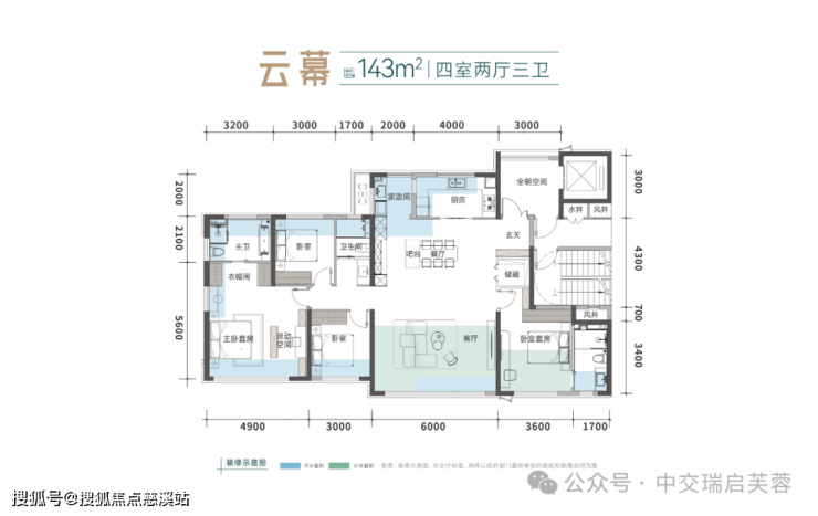 ・约4.9米宽境主卧,套房式设计搭配灵动空间;