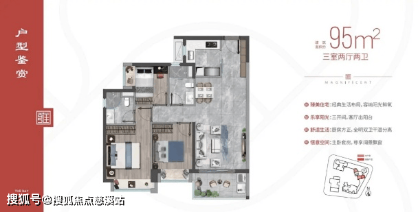 招商雍和府,建筑面积约95-120㎡央企美宅,户型均方正通透,客厅出阳台、卧室带飘窗、明厨明卫,既有客餐厅一体化空间处理、干湿模块分离,又合理制定动静功能分区。