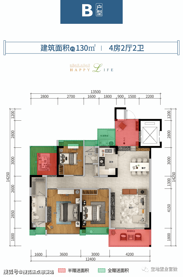 2、市区稀缺板楼设计,主力产品户型104-130平㎡纯正南北通透;